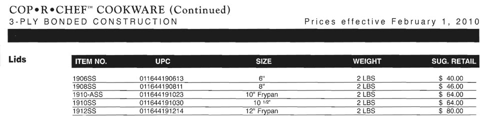 Cop•R•Chef(This series has been discontinued for 2012 - Please contact us for remaining inventory 1-877-386-7766) The copper that creates its extraordinary presence is also what gives Cop-R-Chef its extraordinary performance. The heavy-gauge copper outer layer produces unparalleled evenness of heat, allowing precise control for delicate recipes.