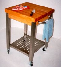 The hottest new look in kitchen equipment combines BUTCHER BLOCK with food service grade stainless steel. We use only the finest hard rock maple and food service grade steel in creating this collection.
